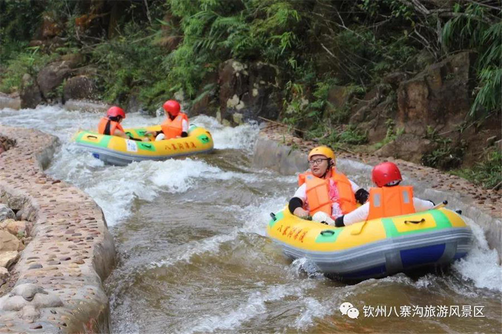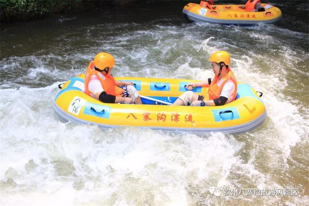 游人乘坐雙人橡皮艇,從清涼的水花中一躍而過,時(shí)而輕盈如燕,時(shí)而奔騰如虎,一路漂蕩、一路歡叫。