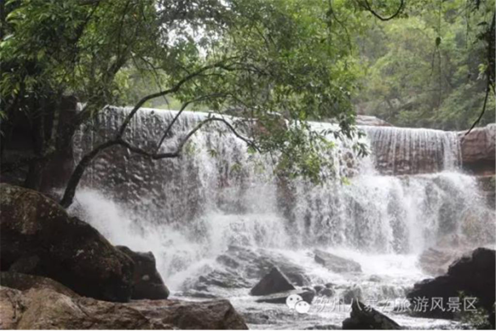 欽州的八寨溝與四川的九寨溝一樣,都具有豐饒的水源,異常清澈,天然原生態,均為未遭到現代文明入侵和污染的圣潔凈土。也許是八寨溝的水都發自十萬大山的深處吧,匯聚著眾多的山泉沿著溝壑奔騰而下,一路隨心翻浪,一路高亢歡歌,從而在長年的沖擊中形成了大大小小的泉潭,并且順著山勢形成了不少或大或小的瀑布。