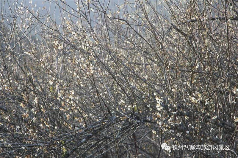 八寨溝的梅花已經開的很好,迎來了最佳賞花期,白色的梅花占據了大片的八寨溝梅園,游人們踏著梅花的幽幽古韻,品味著暗香浮動,體驗八寨溝梅園風光,純凈美好。