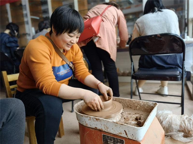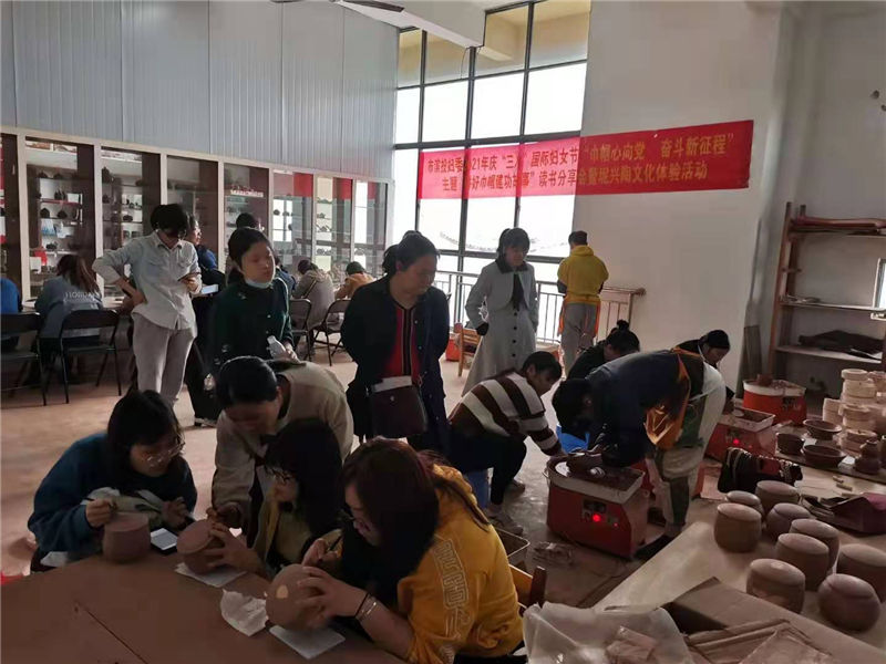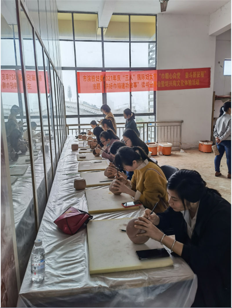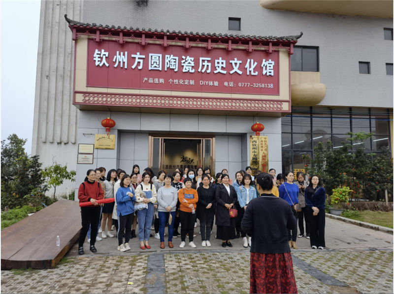 坭興陶文化體驗活動分為文化知識講解和制作體驗兩部分。文化館負(fù)責(zé)人詳細(xì)講解欽州市泥興陶歷史文化、成就,并帶領(lǐng)女職工們參觀陶器燒制現(xiàn)場和泥興陶成品,介紹泥興陶制作過程以及煙塵處理等知識。在陶藝制作體驗環(huán)節(jié),女職工們認(rèn)真觀摩陶藝?yán)蠋煹牟僮餮菔纠吆偷窨?,并有模有樣的制作,雖然制作出來的作品相對粗糙,但大家如獲至寶。
