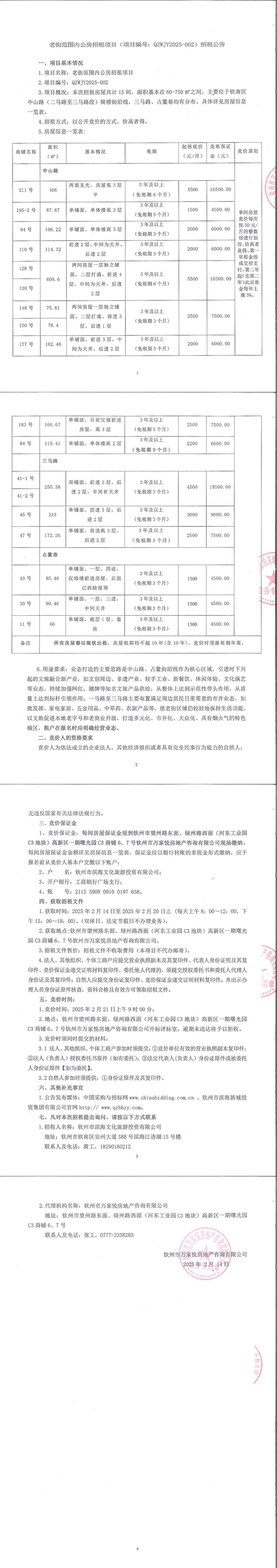 老街范圍內(nèi)公房招租項(xiàng)目(項(xiàng)目編號(hào):QZWJY2025-002)招租公告