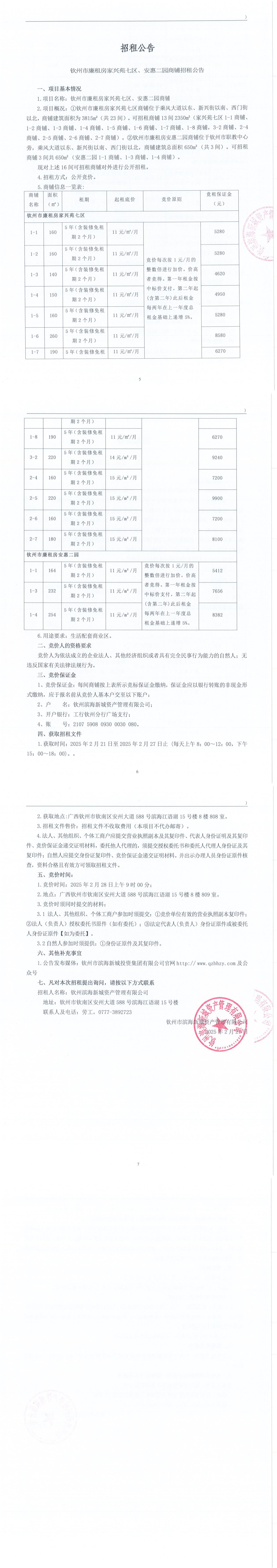 欽州市廉租房家興苑七區(qū)、安惠二園商鋪招租公告