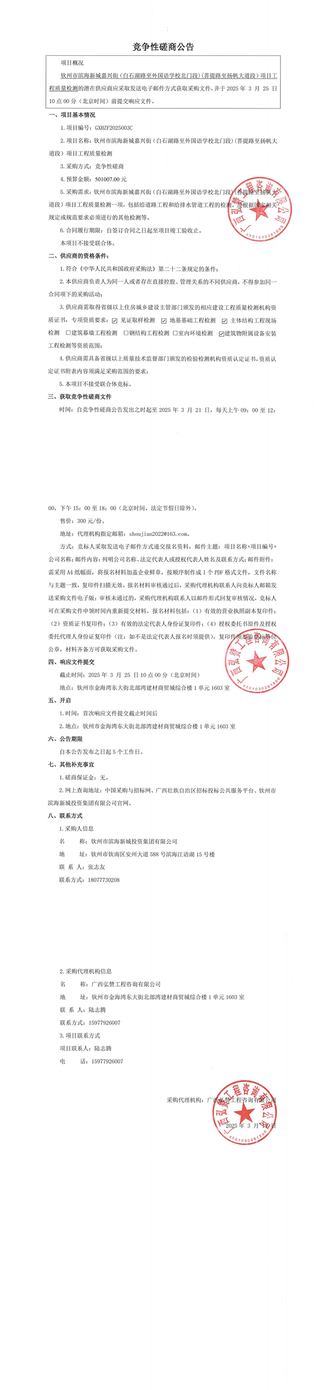 競(jìng)爭(zhēng)性磋商公告-欽州市濱海新城嘉興街(白石湖路至外國(guó)語(yǔ)學(xué)校北門段)(菩...