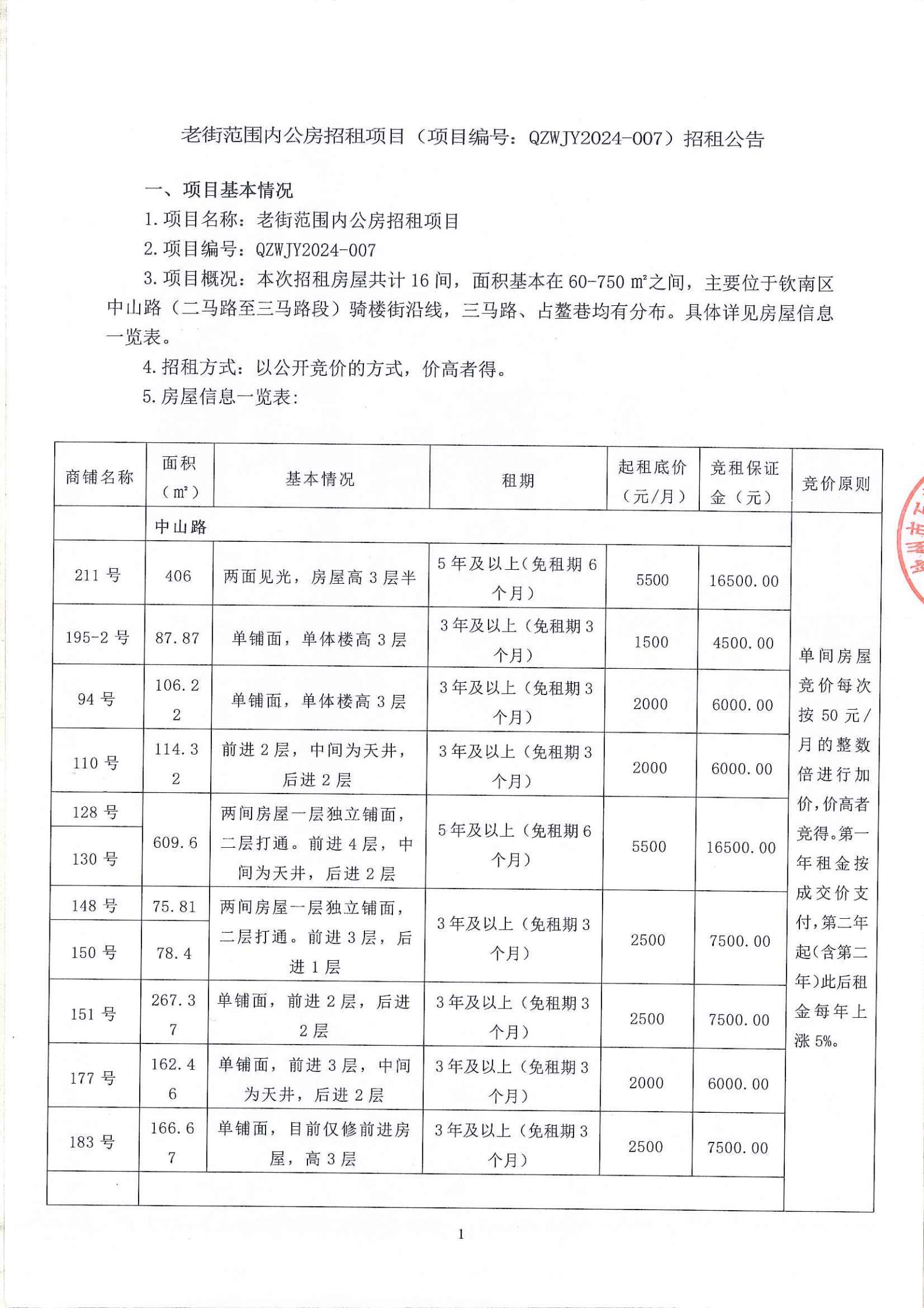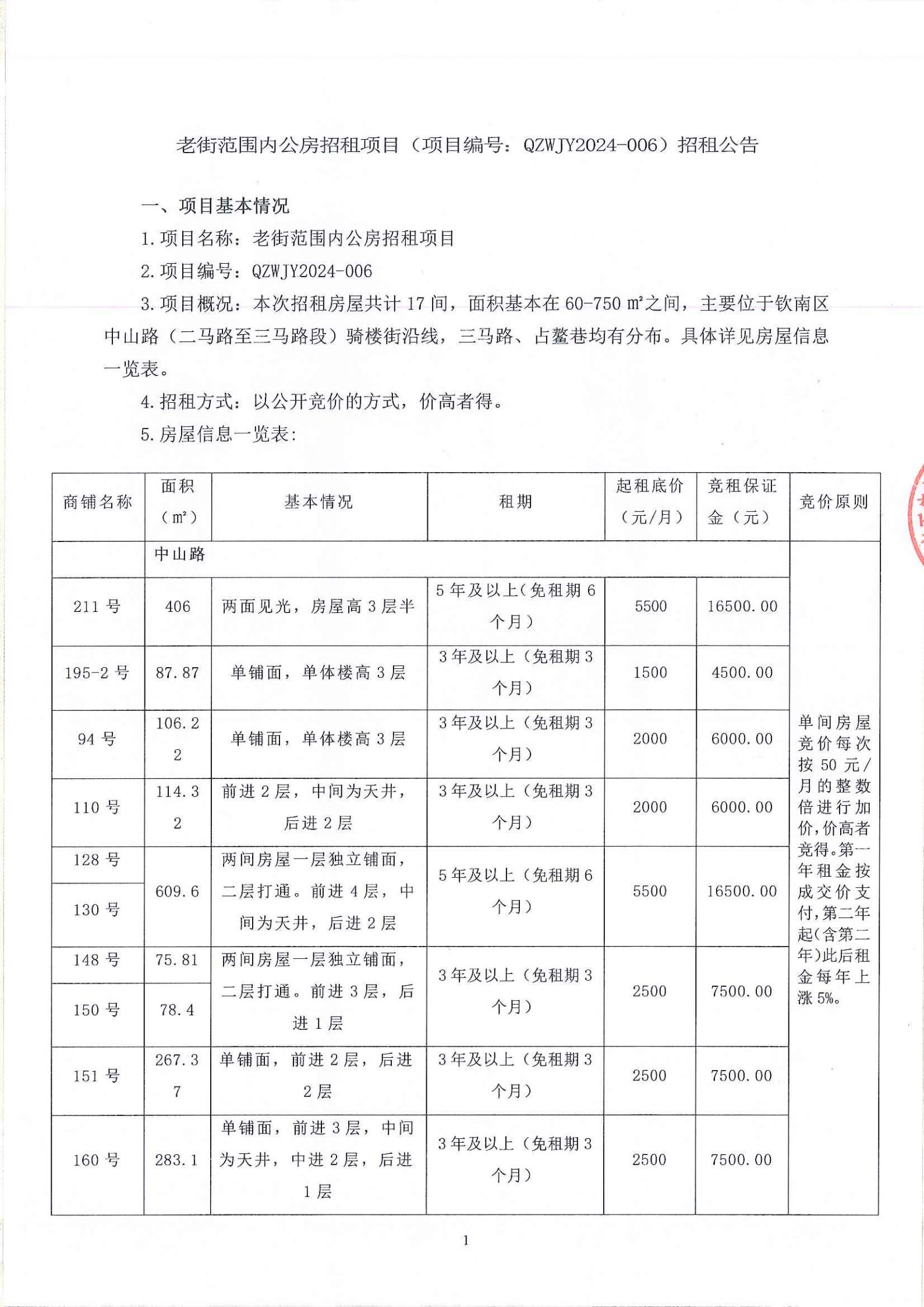 關于欽州市老街范圍中山路49號房屋公開招租的公告
