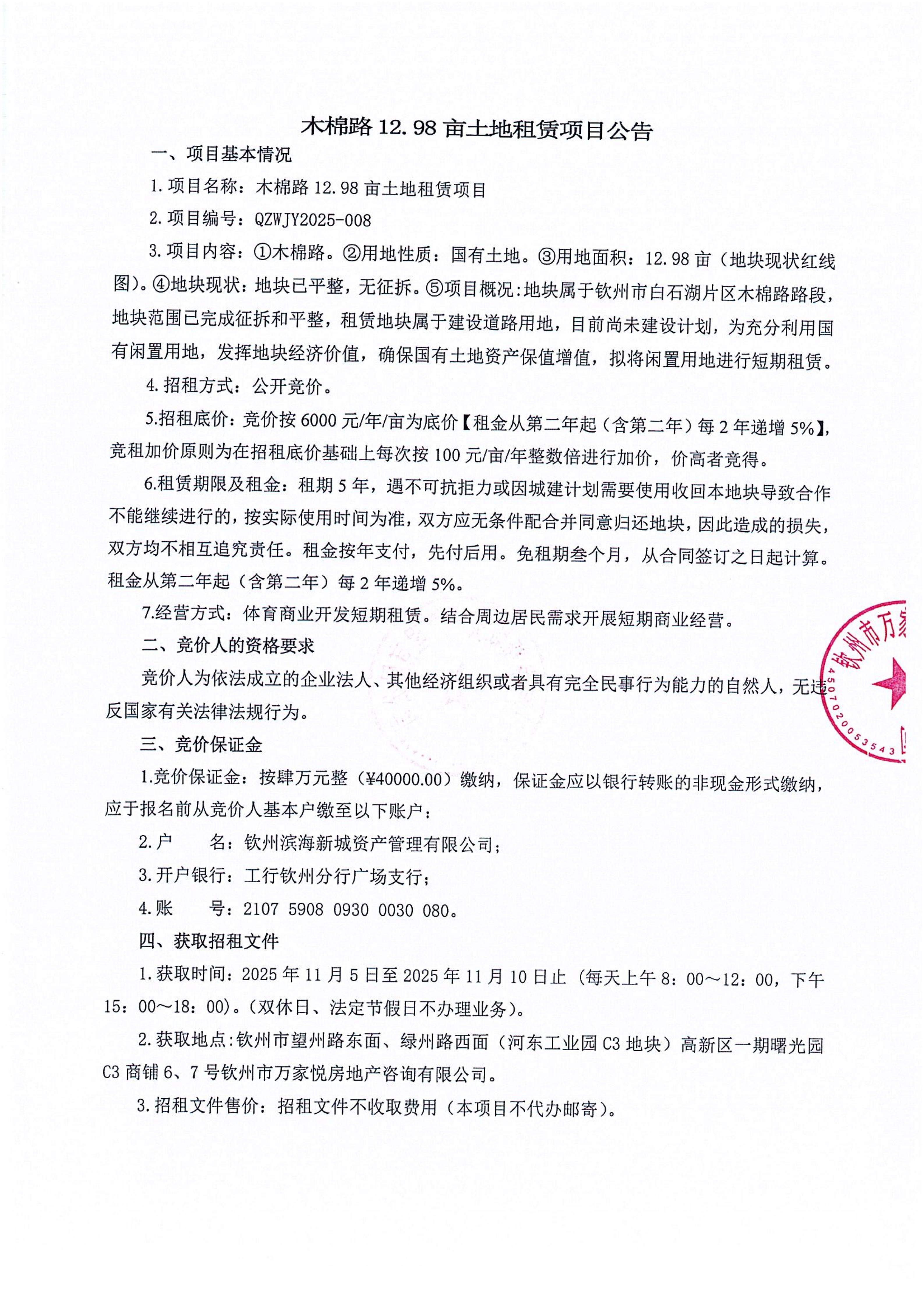 欽州市濱海文化旅游投資有限公司關于欽州市老街范圍房屋公開招租結果公示(...
