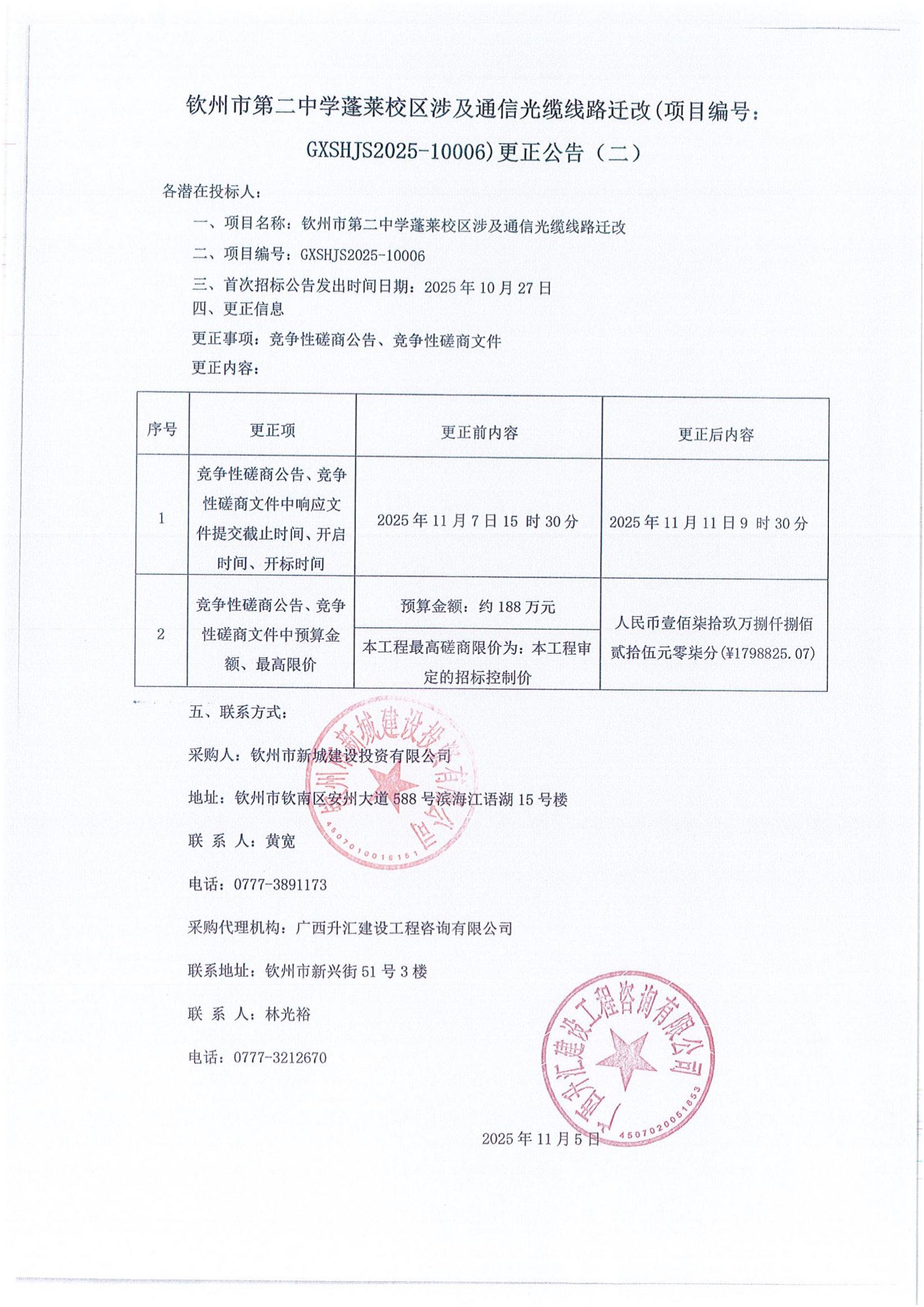 欽州市第二中學蓬萊校區涉及通信光纜線路遷改(項目編號: GXSHJS2...