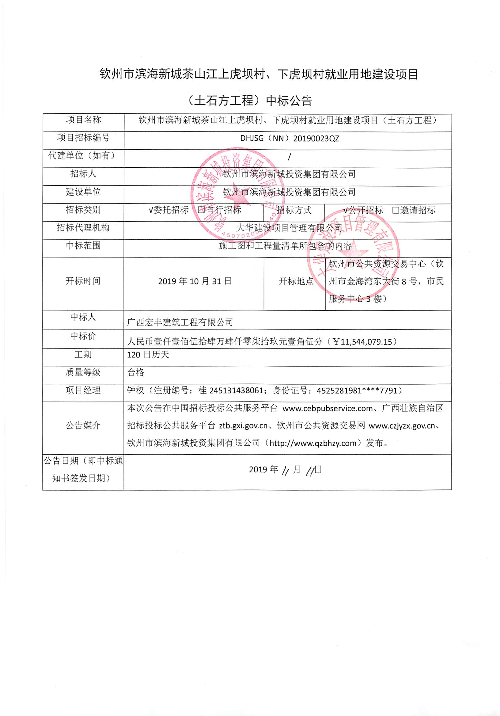 欽州市濱海新城茶山江上虎壩村、下虎壩村就業(yè)用地建設項目(土石方工程)