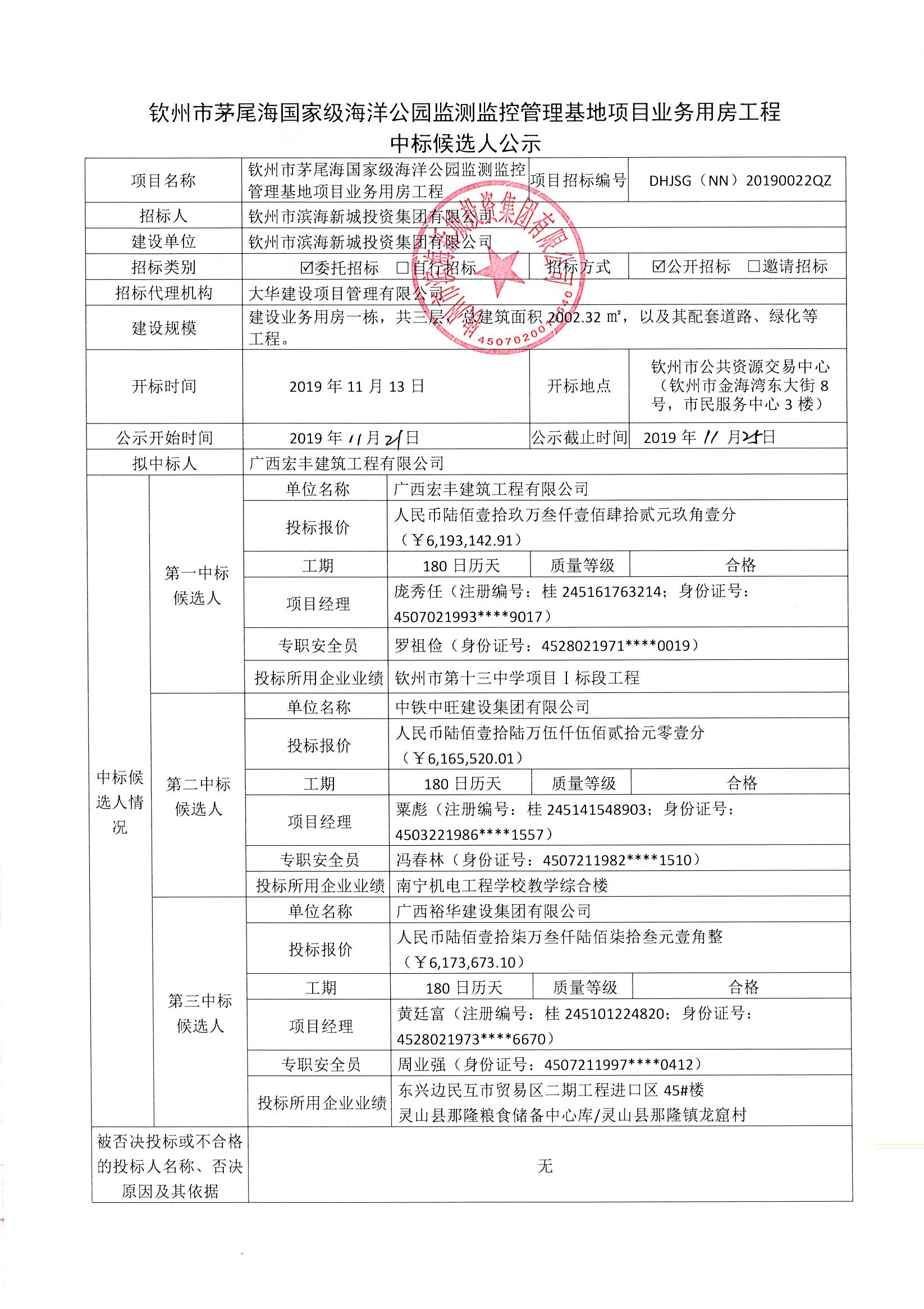 欽州市茅尾海國家級海洋公園監(jiān)測監(jiān)控管理基地項目業(yè)務用房工程中標候選人公...