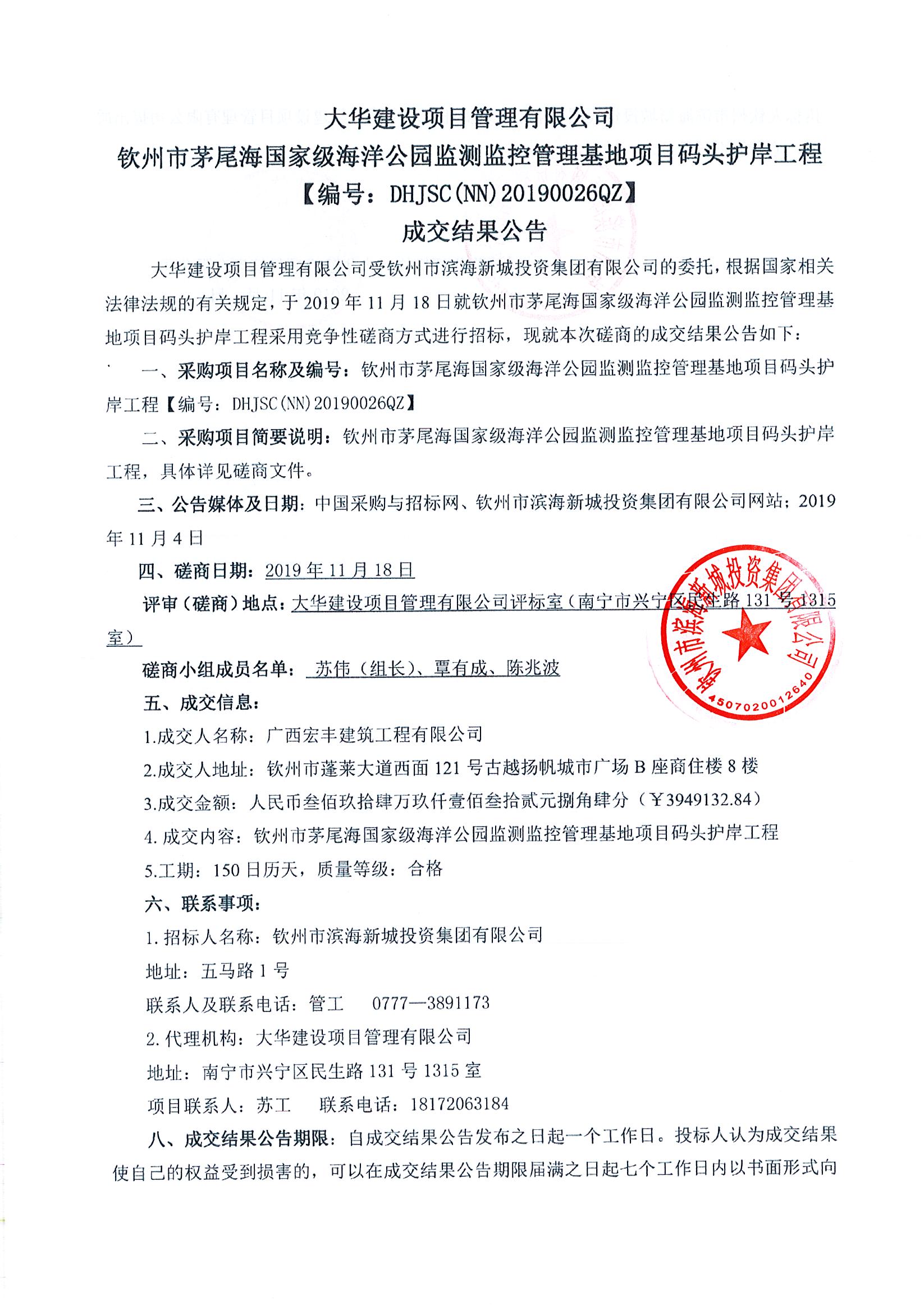 欽州市茅尾海國家級海洋公園監(jiān)測監(jiān)控管理基地項目碼頭護岸工程-成交結(jié)果公...