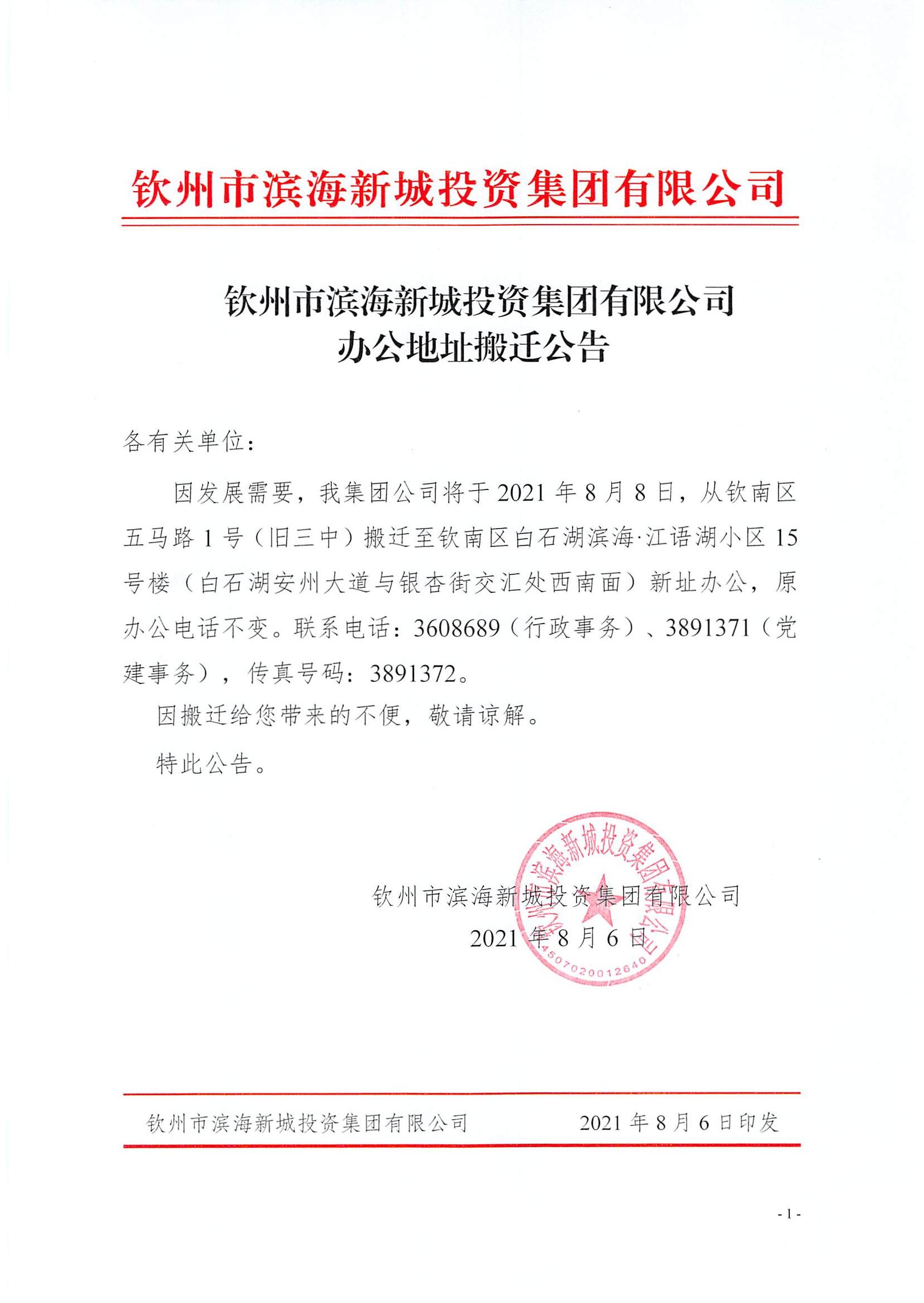 2021年8月12日,欽州市濱海新城投資集團有限公司新辦公場所揭牌儀式順利舉行。10點28分,市委常......