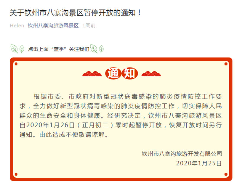 為進一步加強八寨溝景區新型冠狀病毒感染的肺炎疫情防控工作,有效防止疫情經旅游途徑傳播,切實保障游客及......