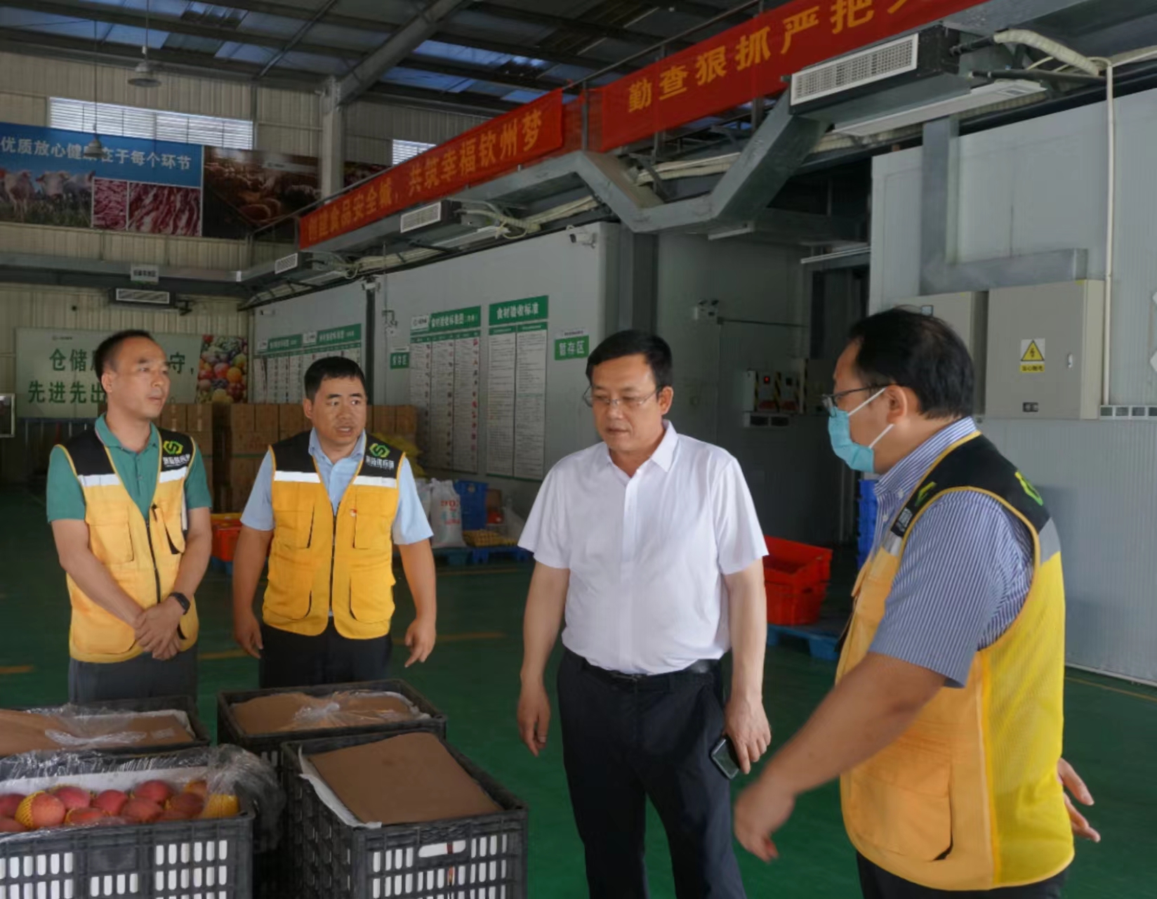 盧長任走訪供應鏈公司各個工作區域認真聽取了供應鏈公司對于嚴抓食品安全問題的辦法和措施,重點對中、高考期間食材的檢測、保供準備工作情況,詳細了解目前食材配送的各環節工作及食材儲存、檢測等與食品安全相關的情況。