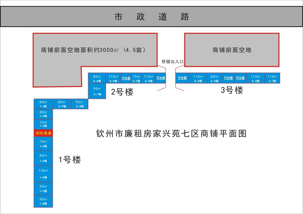 1.本次招租的項目是欽州市廉租房家興苑七區商鋪,此次招租商鋪共18間,總建筑面積3175㎡,商鋪結構分為上下兩層,其中2-8、2-9號商鋪一層,建筑面積分別為80㎡—220㎡。