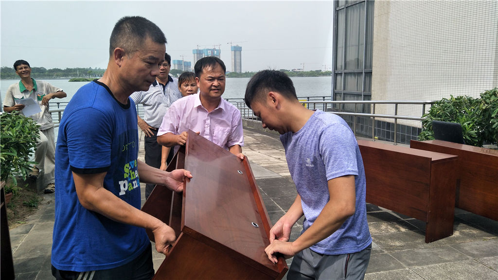 7月18日上午9:30,我集團公司向欽州市初心公益協會贈與一批辦公桌椅,用于解決分界村民服務中心樓新時代講習所桌椅短缺問題。 (圖為:我集團公司代表簽字) (圖為:對方代表簽字) (圖為:搬運辦公桌椅)