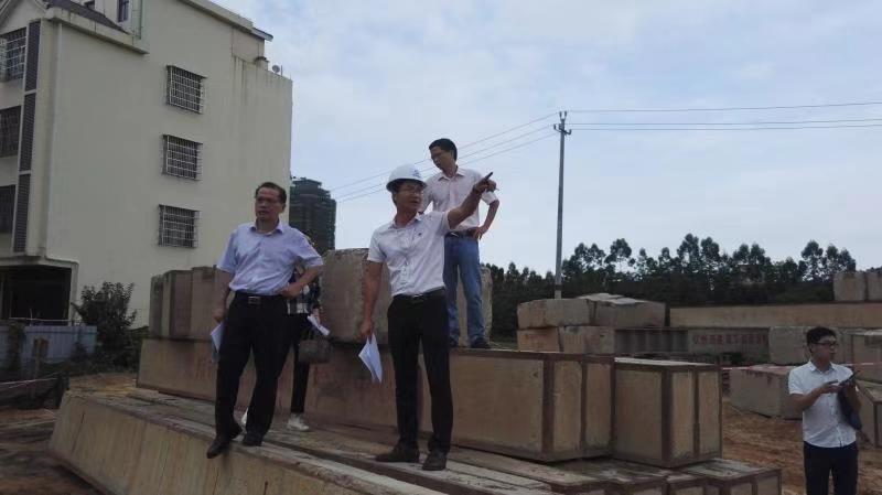 為確保完成全市中央預算內投資執行專項績效考核任務,8月22日上午10:00市發展改革委副主任許明樂、市財政局副局長黃榮恒帶隊到我集團公司項目欽州市東邊塘安置小區項目現場進行考察。欽州市濱海新城房地產開發有限公司副總經理劉大鵬到現場迎檢并匯報了關于該項目的項目進展情況、資金使用情況存在的問題等。