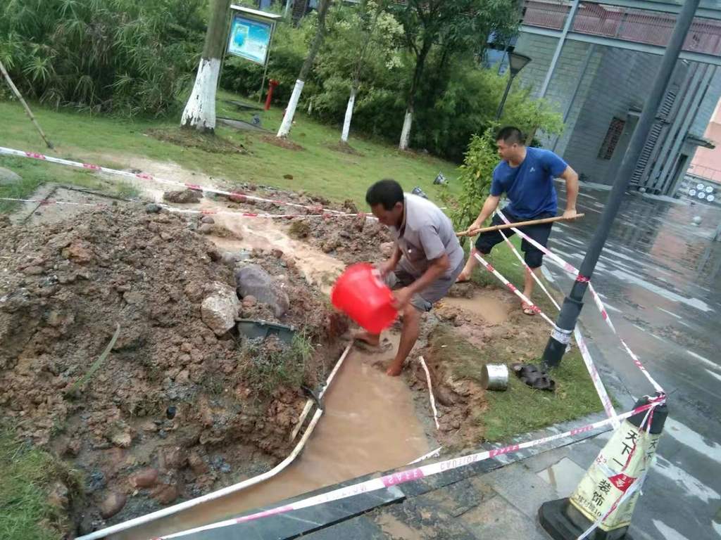 8月29日傍晚,蘭亭街一處深埋的水管爆裂,裂口較大,出水很急。我集團公司子公司資產公司接到電話后,立即安排人員到現(xiàn)場深入了解情況,聯(lián)系水務公司專業(yè)維修隊進行搶修,并及時通知蘭亭街商家做好儲水應急準備。