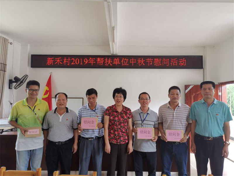 月到中秋分外明,人到佳節(jié)別樣親,在國(guó)慶、中秋佳節(jié)來(lái)臨之際,為讓貧困戶過(guò)上一個(gè)溫馨、祥和的中秋佳節(jié),9月11日上午,集團(tuán)公司副總經(jīng)理?xiàng)钚聴?、余業(yè)勝率部分黨員干部來(lái)到新禾村,對(duì)村干部、駐村工作隊(duì)員、貧困戶開(kāi)展中秋節(jié)慰問(wèn)活動(dòng),讓幫扶對(duì)象感受到幫扶干部的關(guān)愛(ài)和祝福。