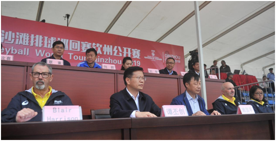 10月31日,2019年世界沙灘排球賽—欽州公開賽開幕式在比賽現(xiàn)場主賽場舉行,國際排聯(lián)技術(shù)代表布萊爾•哈里森、國家體育總局排球運動管理中心黨委書記顧國平講話,譚丕創(chuàng)市長致辭并宣布2019年世界沙灘排球巡回賽開幕。