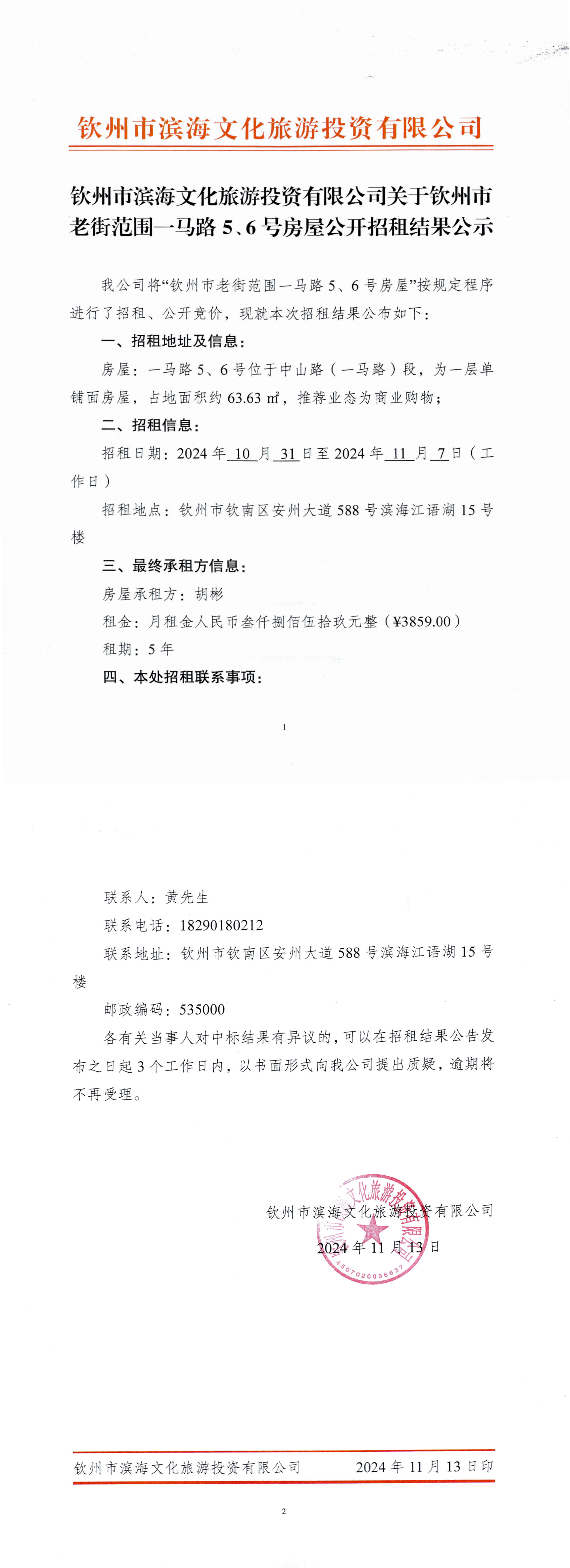 欽州市家興苑七區、安惠二園商鋪招租項目成交結果公告