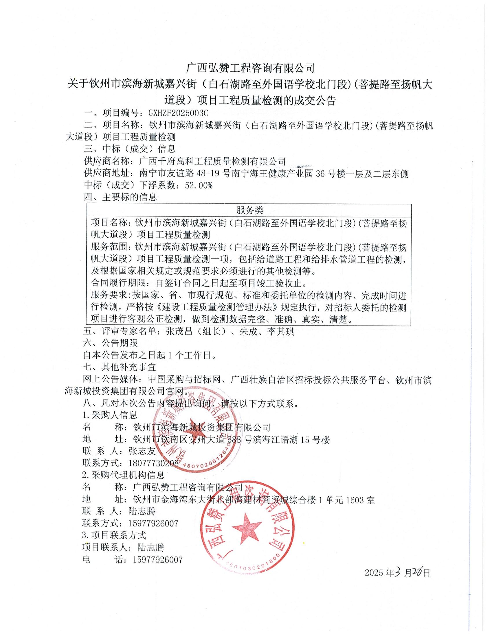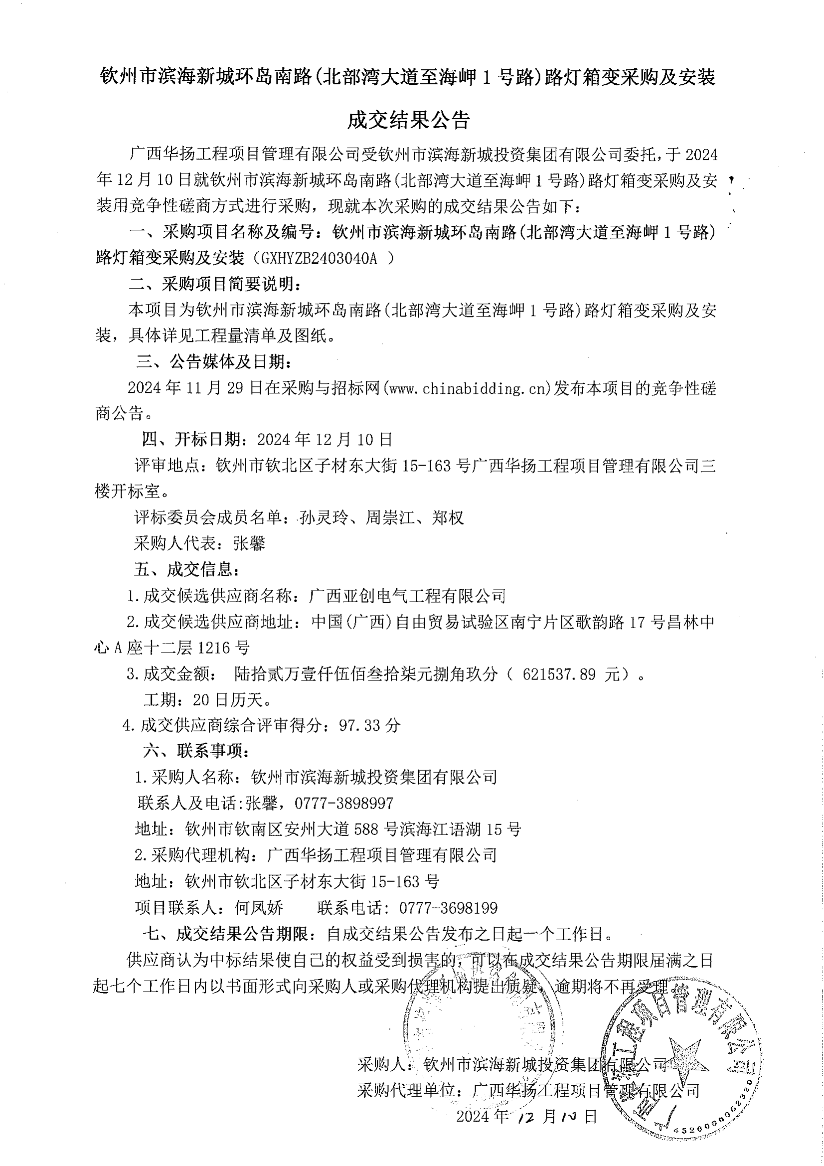 成交公告-欽州市濱海新城嘉興街污水泵站、K1+760處路燈箱變及10K...