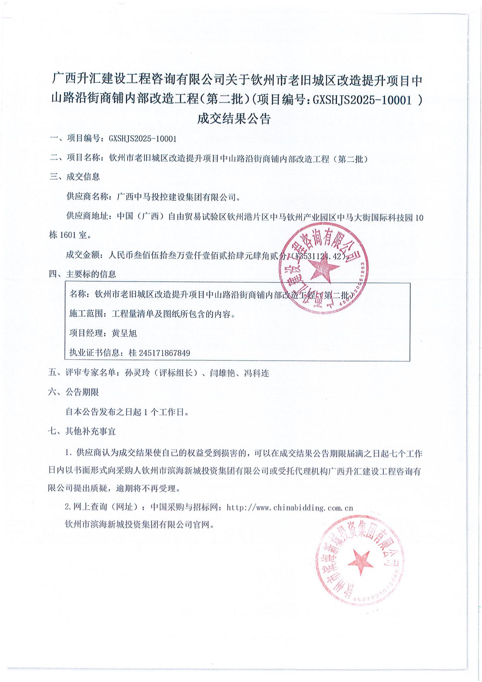 欽州市老舊城區改造提升項目中山路沿街商鋪內部改造工程(第二批)-成交公...