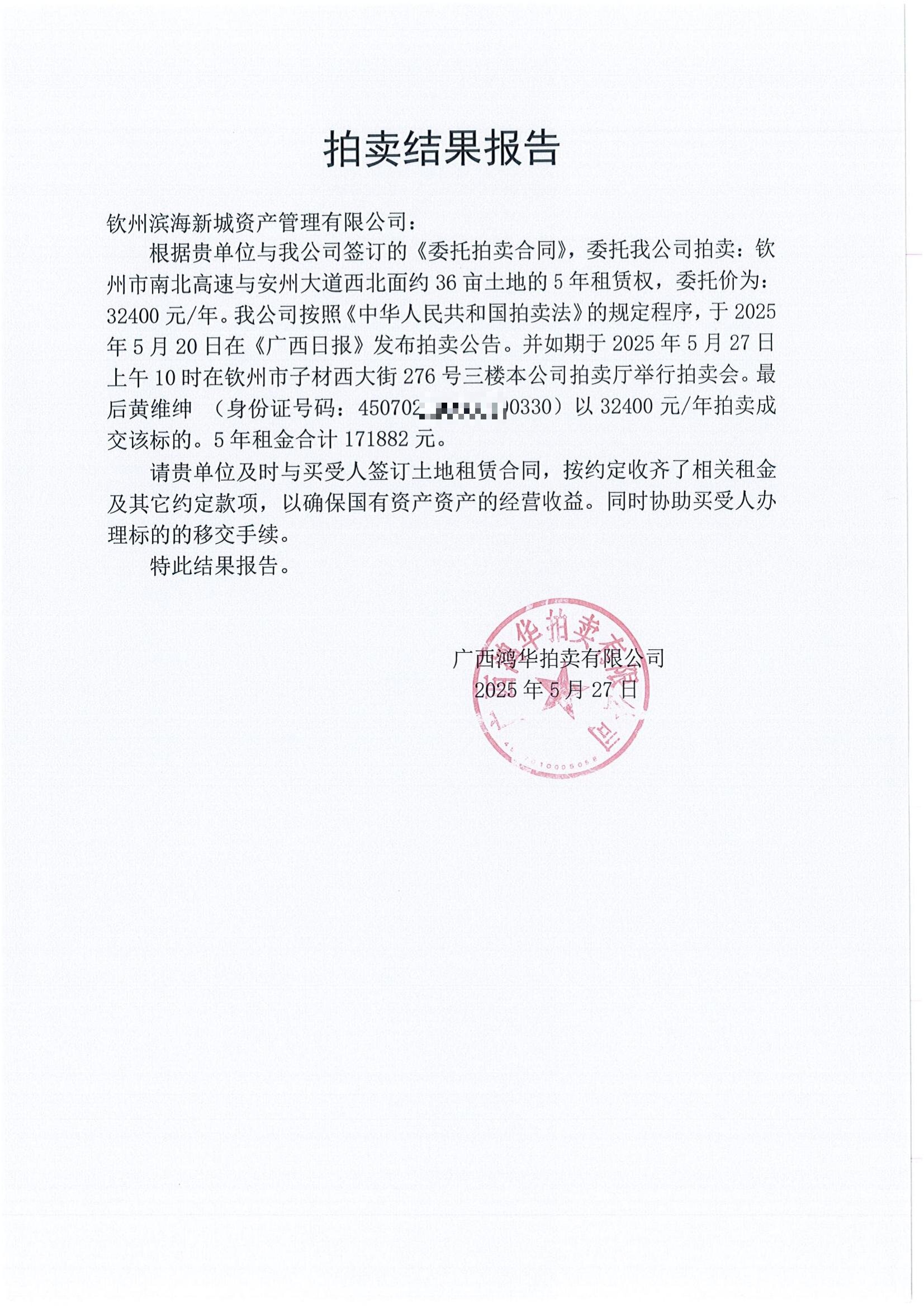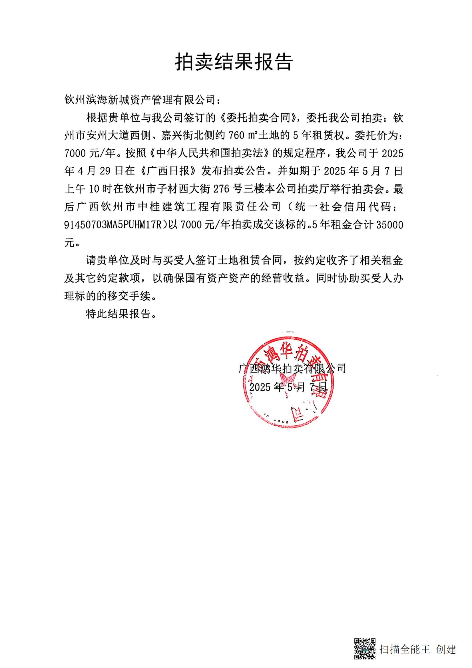 成交公告(欽州市七里香溪北面3畝土地)