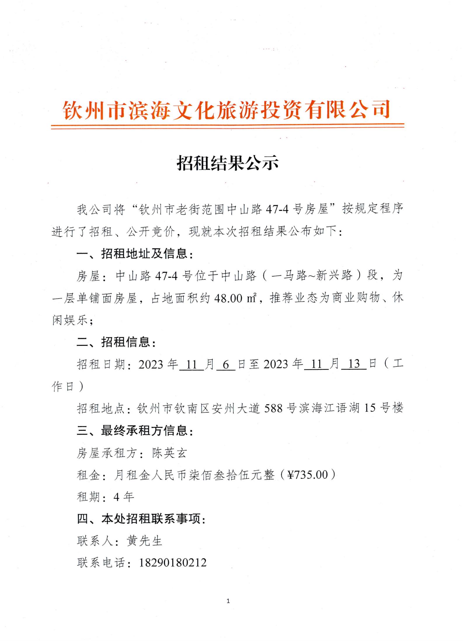 關于欽州市老街范圍中山路47-1號房屋公開招租的公示