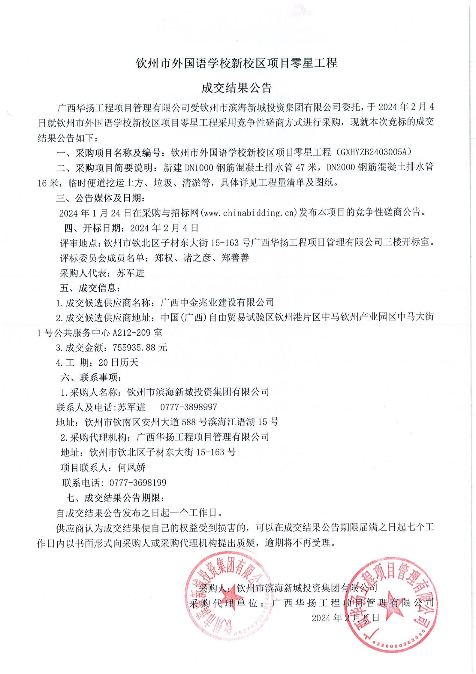 欽州市外國語學校新校區項目工程檢測中標候選人公示