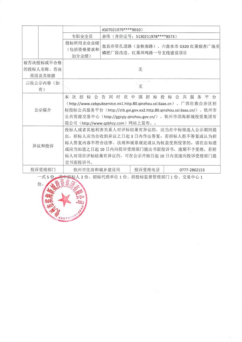 欽州市兒童醫院配套道路建設項目—凌云街(局部)道路工程中標候選人公示