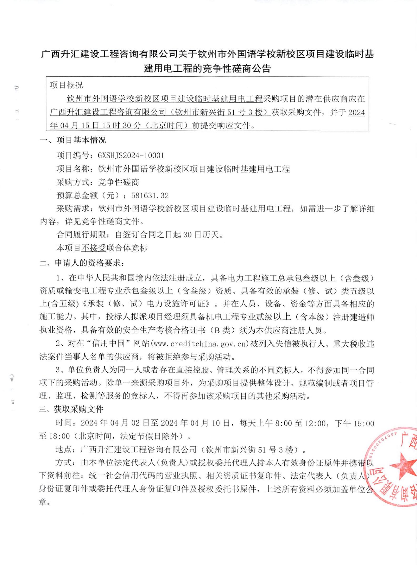 廣西升匯建設工程咨詢有限公司關于欽州市外國語學校新校區項目建設臨時基建...