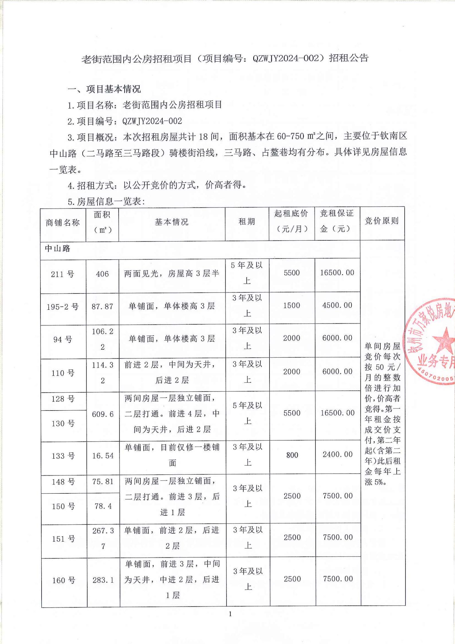 老街范圍內公房招租項目(項目編號:QZKR2024-006)招租公告