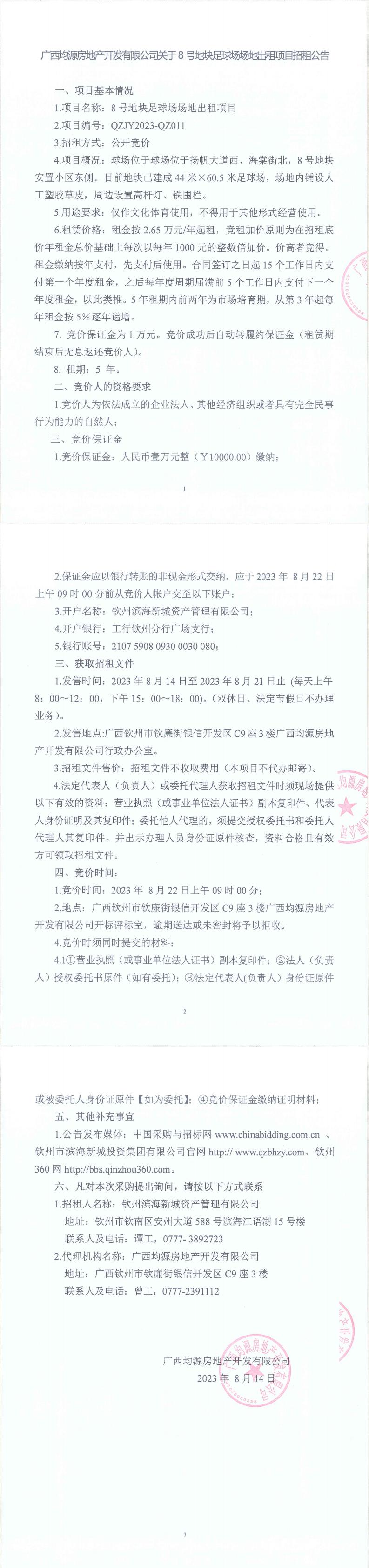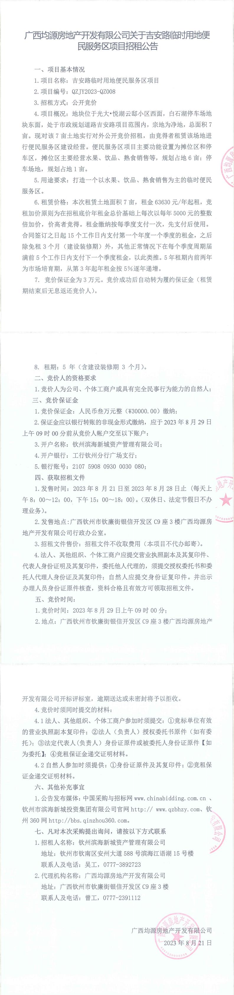 關于欽州市廉租房家興苑七區、安惠二園商鋪出租項目招租公告