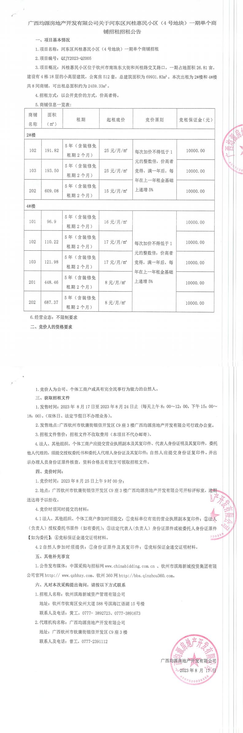 關于興桂惠民小區(4號地塊)二期商鋪招租公告
