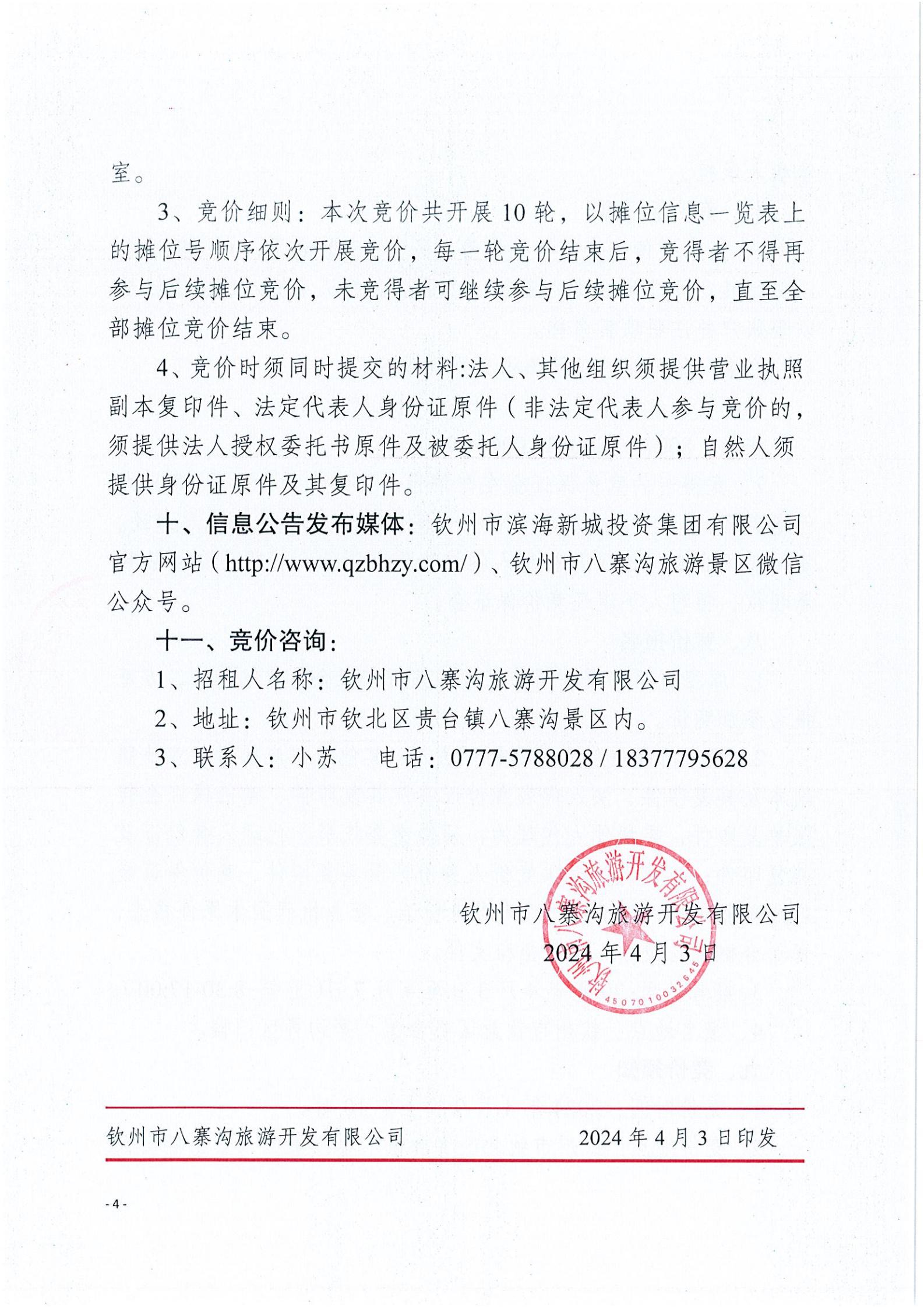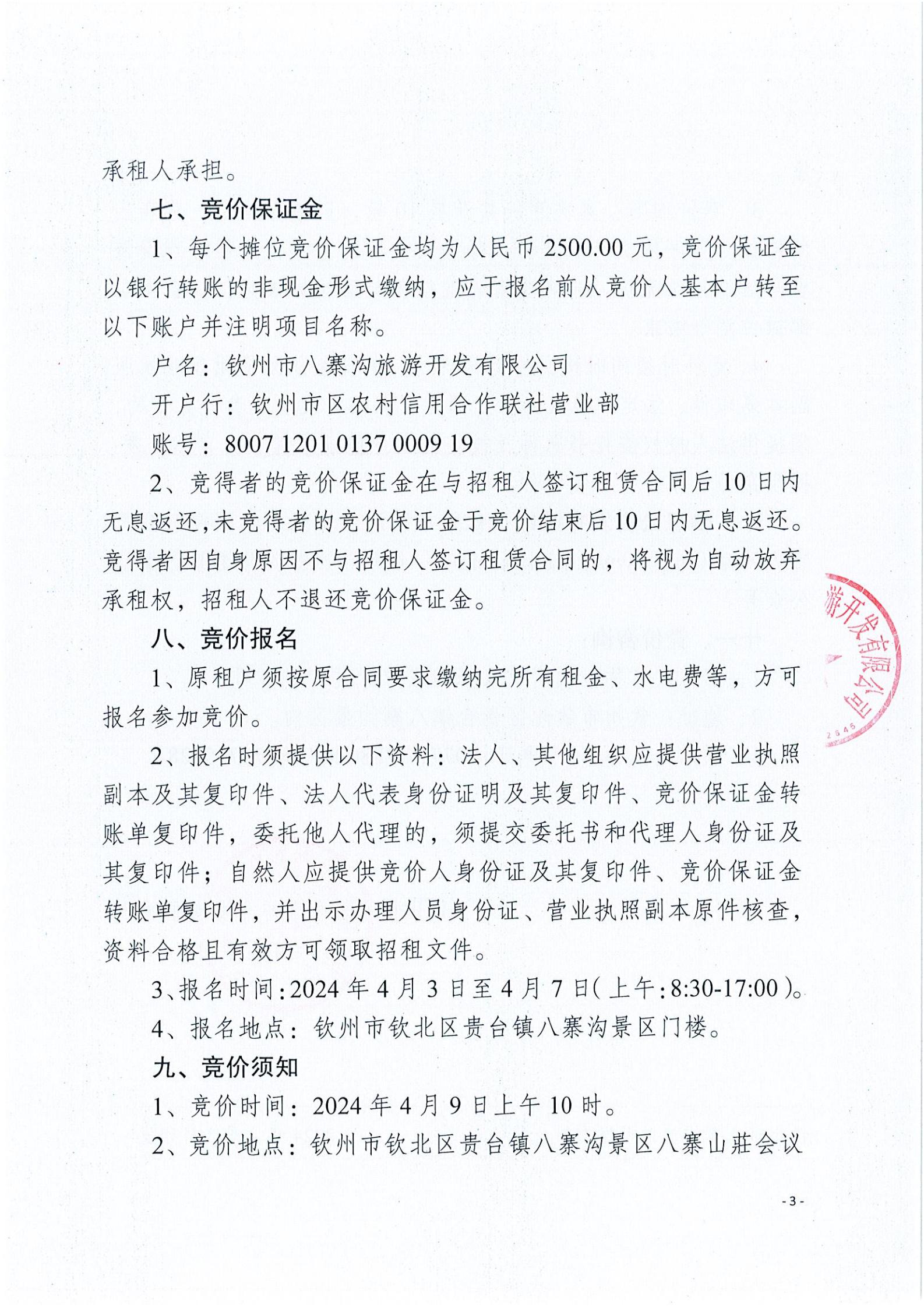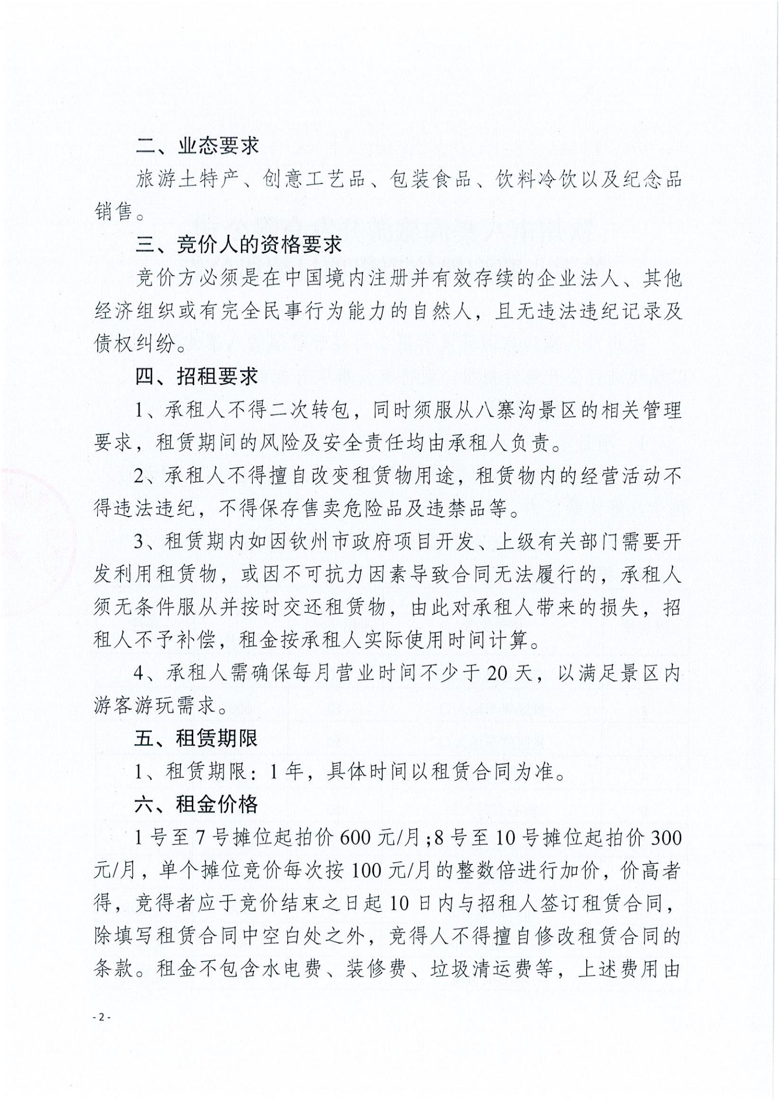 關于八寨溝攤位招租項目招租公告